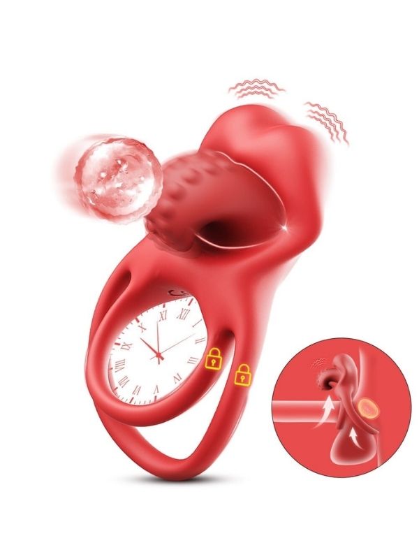 Censan G-Noktası Uyarımlı Dilli Titreşimli Penis Halkası – Çift Yönlü Zevk