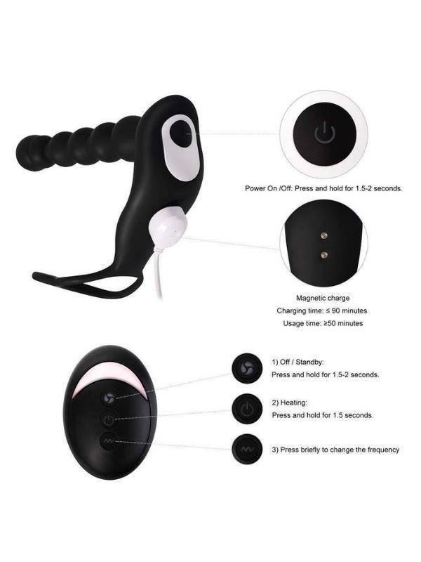 Censan Penis Halkalı Anal Prostat Vibratör Isıtma modu 10 farklı titreşim modu çift motorlu uzaktan kumandalı şarjlı vibratör kumandası 1ad 23a pil ile çalışır