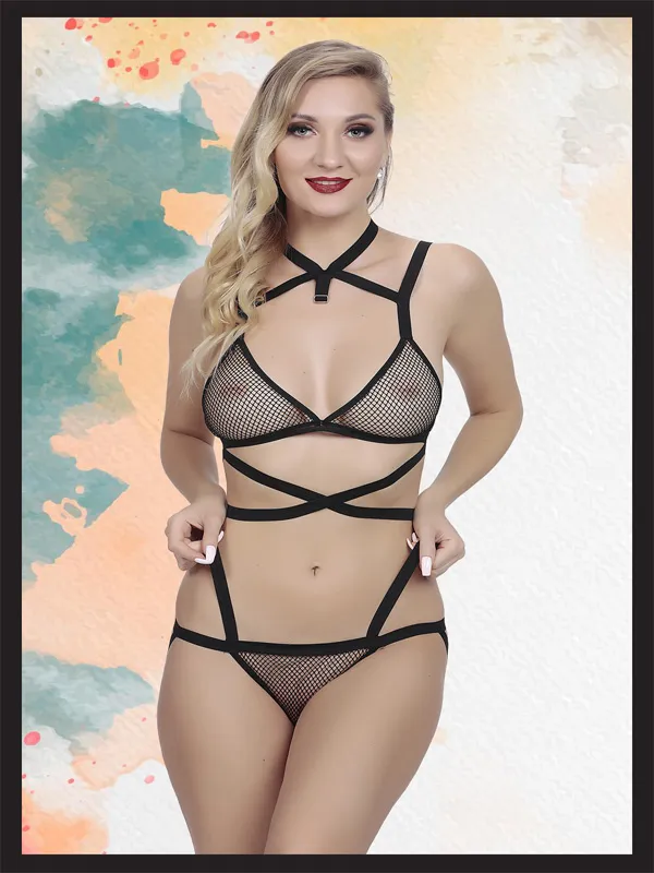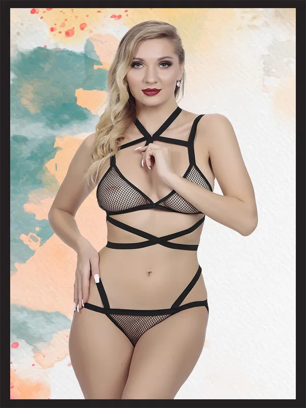 As Erotik Siyah File Detaylı Fantezi İç Çamaşır Takımı