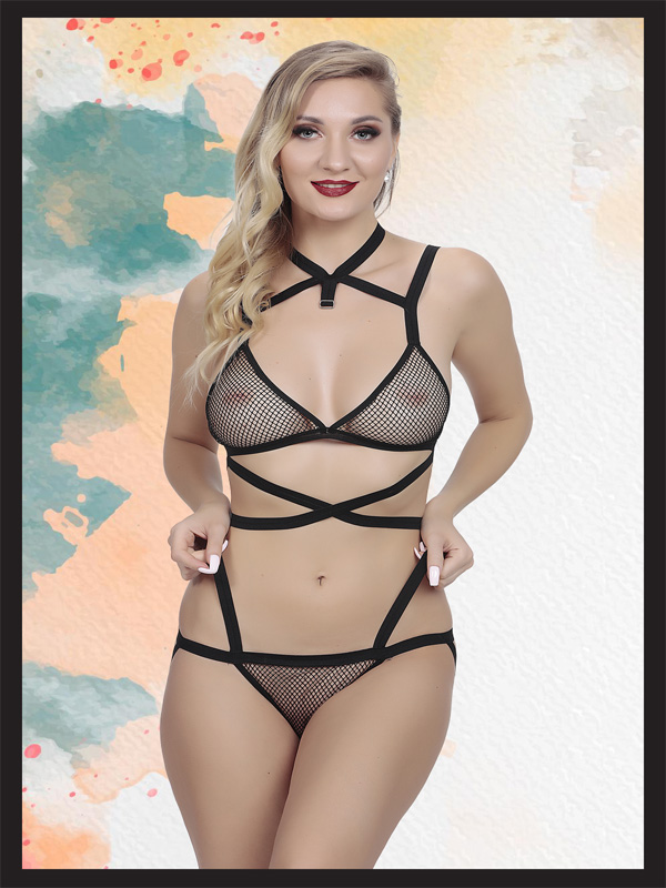 Censan Siyah File Detaylı Fantezi İç Çamaşır Takımı