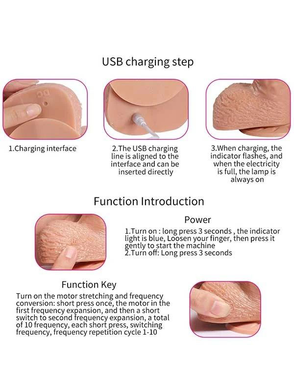 Gerçekçi penis dokusu formundadır ve pürüzsüz yüzeylerde vantuz tabanı ile sabitlenebilir. Belden bağlamalı kemerler ile kullanılabilir. Cilt dostu malzemeden üretilmiştir. Daha gerçekçi hissiyat için damarlı ve testisli yapıya sahiptir. Her kullanımdan sonra oyuncak temizleyici sprey veya ılık su ile temizlenebilir.