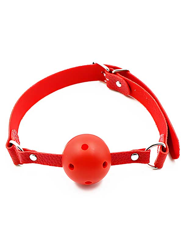 NOXXX Kırmızı Delikli Ağız Topu. Bantı ile birlikte 57 cm uzunluğundadır. Toptaki delikler sayesinde kolaylıkla nefes alınabilir. Bant yüzü sarması için esnek yapıdadır ve kemeri sayesinde kolayca her yüzde sabit durur. Topun genişliği 4.4 cm’dir. PVC maddeden yapılmıştır. 31.2 gr ağırlığındadır.